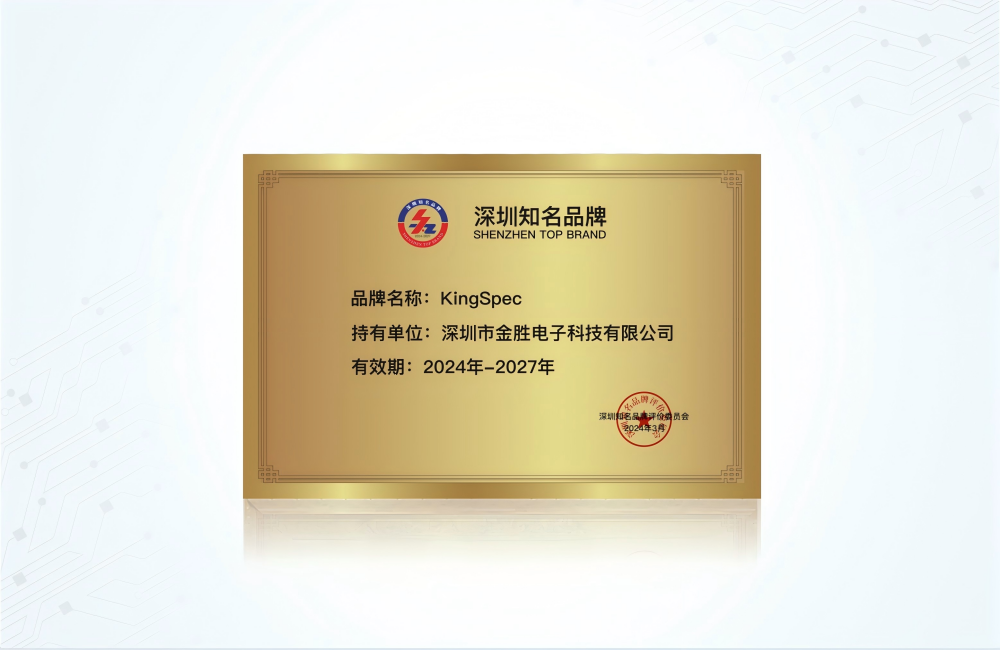 “KingSpec”榮獲第二十一屆“深圳知名品牌”稱(chēng)號(hào)及“灣區(qū)知名品牌”
